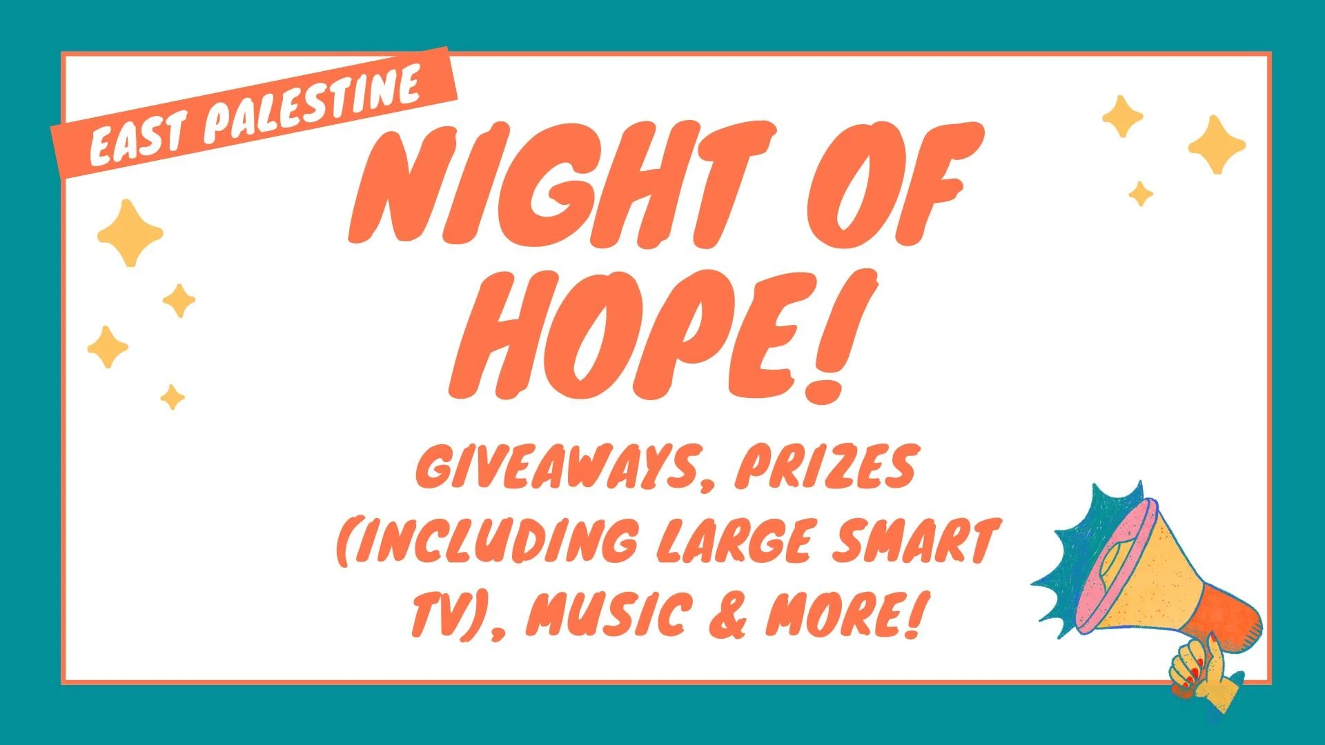 Back to All Events Night of Hope Thursday, March 26, 2026 6:00 PM 8:00 PM Memories, Meetings & More 1571 Pennsylvania Avenue East Liverpool, OH, 43920 United States (map) Google Calendar ICS Night of Hope East LiverpoolJoin us for this FREE community event in East Liverpool. We will be having giveways and prizes (including a large smart tv), music, speakers and more! Event starts at 6 PM at 1571 Pennsylvania Ave SUITE B in East Liverpool.